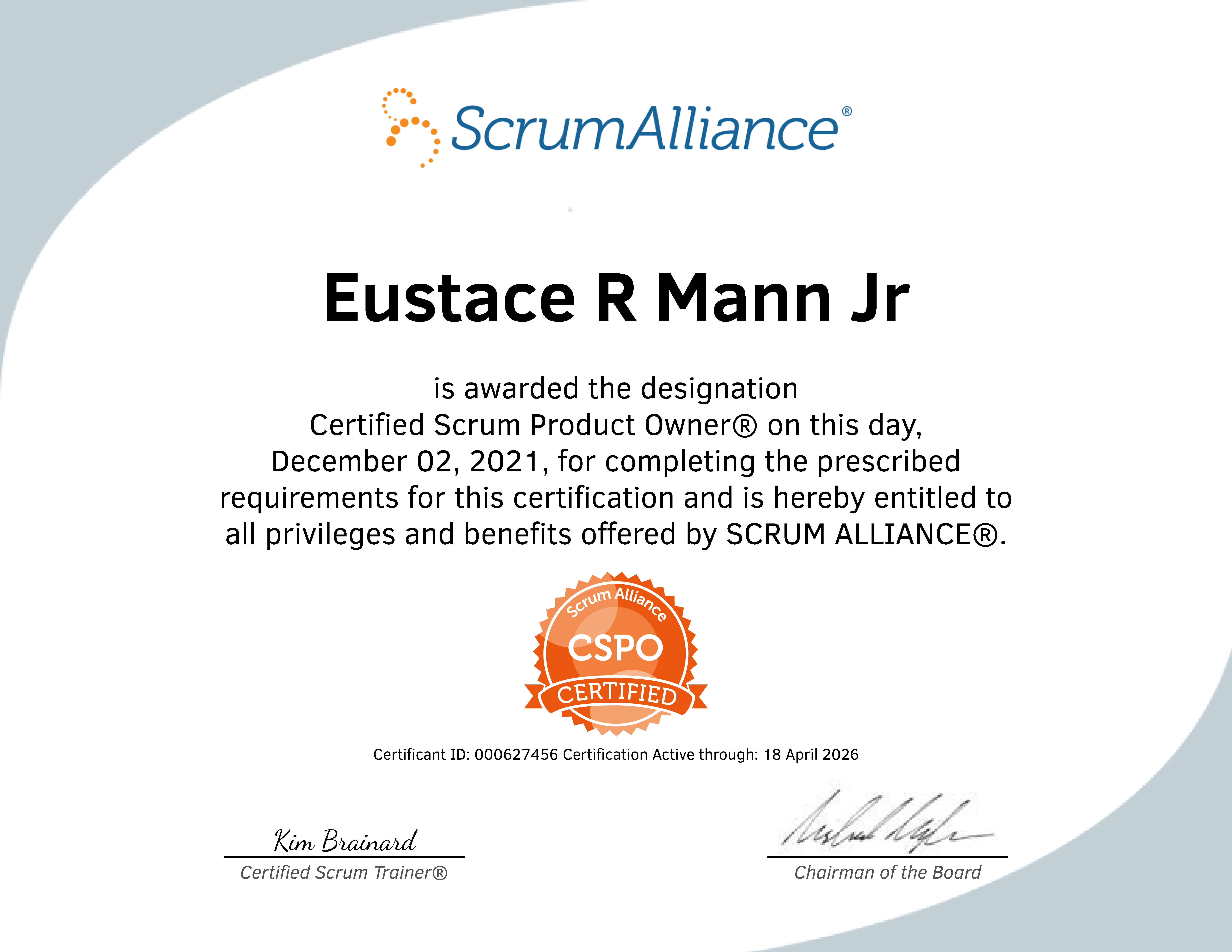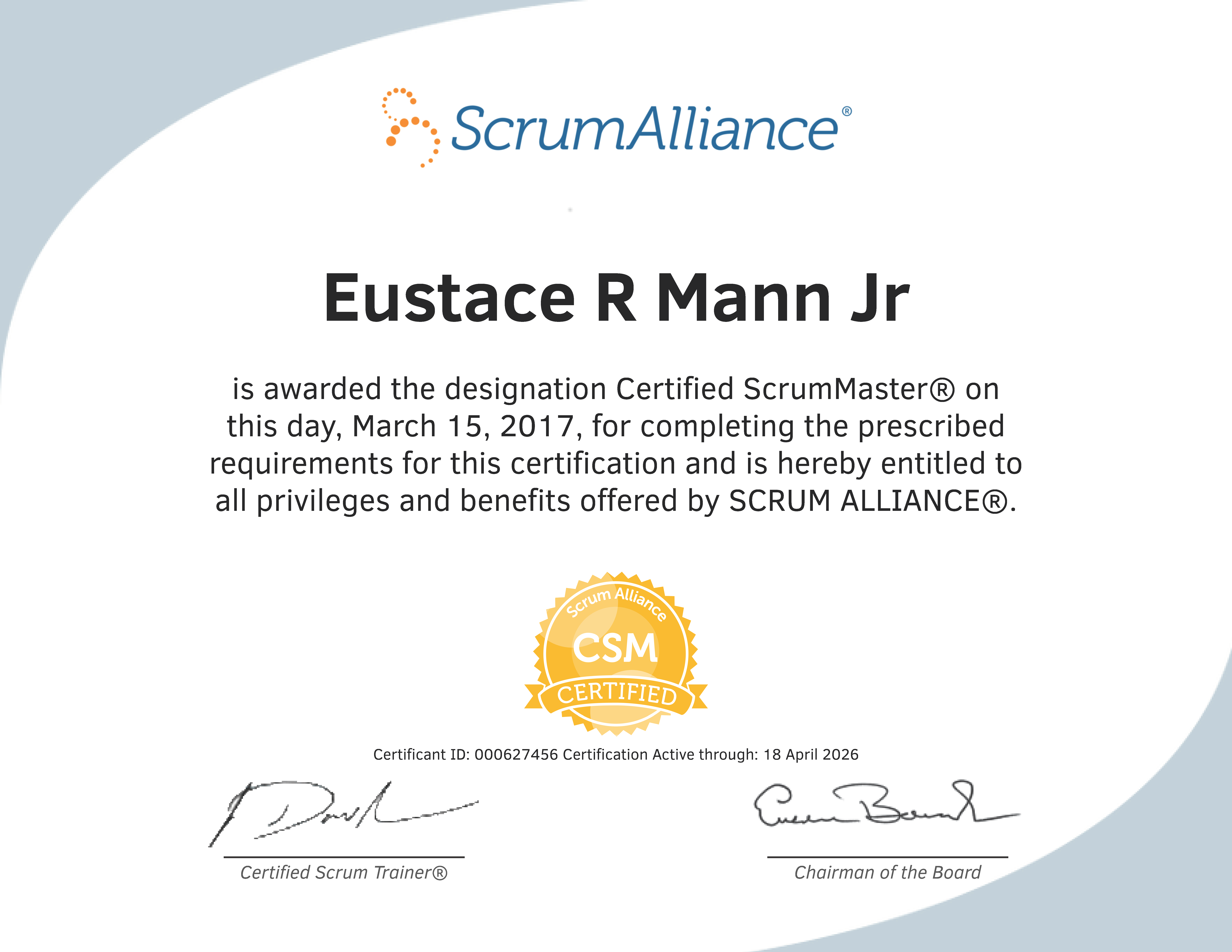 Today, the Tech Mann specializes in cloud development as a certified Scrum Master & Product Owner, contributing to the safety, support, & security of the US government's monetary policy.